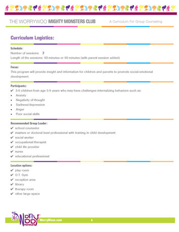 The activities we created for Mighty Monsters Club are structured to support counselors, facilitators and mental health professionals on their journey to implementing WorryWoos into group settings.